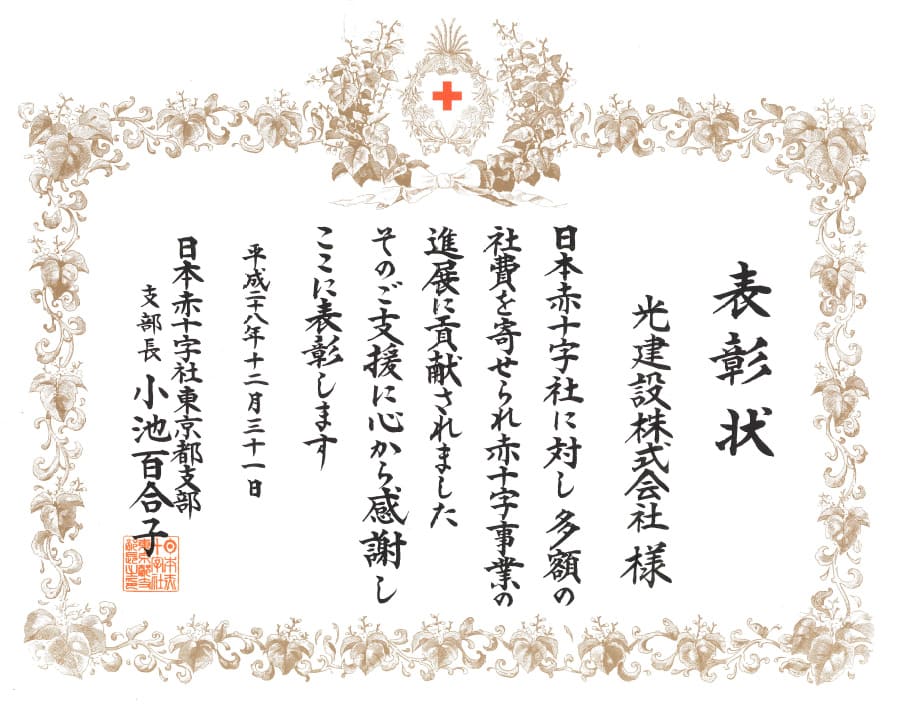 光建設はさまざまな方面から信頼いただき、認めていただいております。 今後も地域に貢献し続けられるよう努めて参りますので、どうぞ宜しくお願い申し上げます。